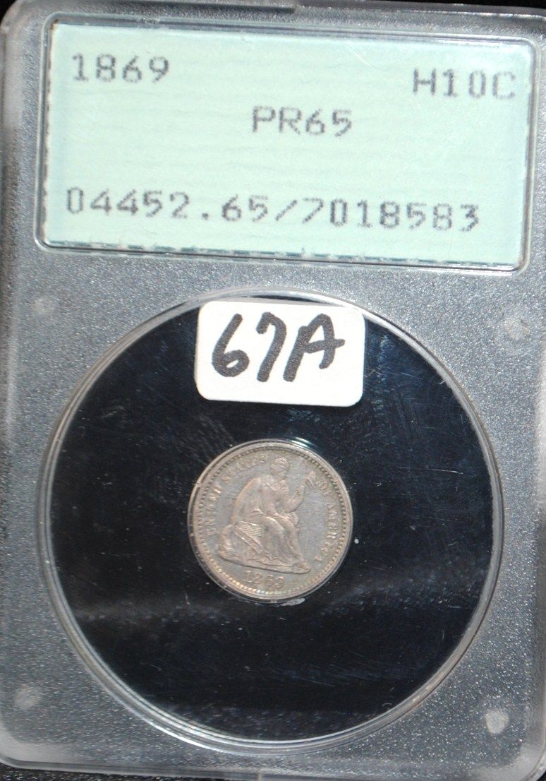 RARE 1869 SEATED LIBERTY DIME - PCGS PR65 - EARLY VINTAGE GREEN HOLDER (COIN WORLD LISTS A MS65 @