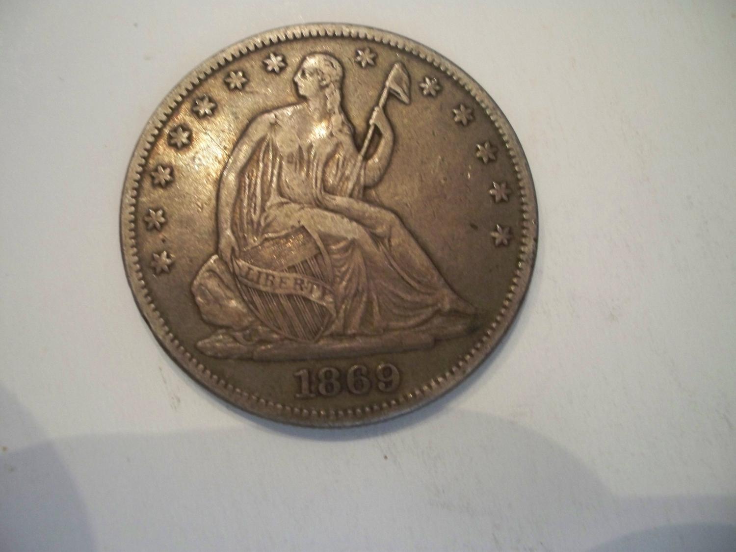 RARE 1869 Seated Liberty Silver Half Dollar, XF40