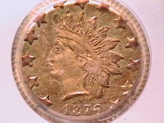 1876 50C California Gold Piece MS63 PCGS Indian obverse with stars and date. Reverse has the denomination 1/2 Dollar, surrounded by a wreath.