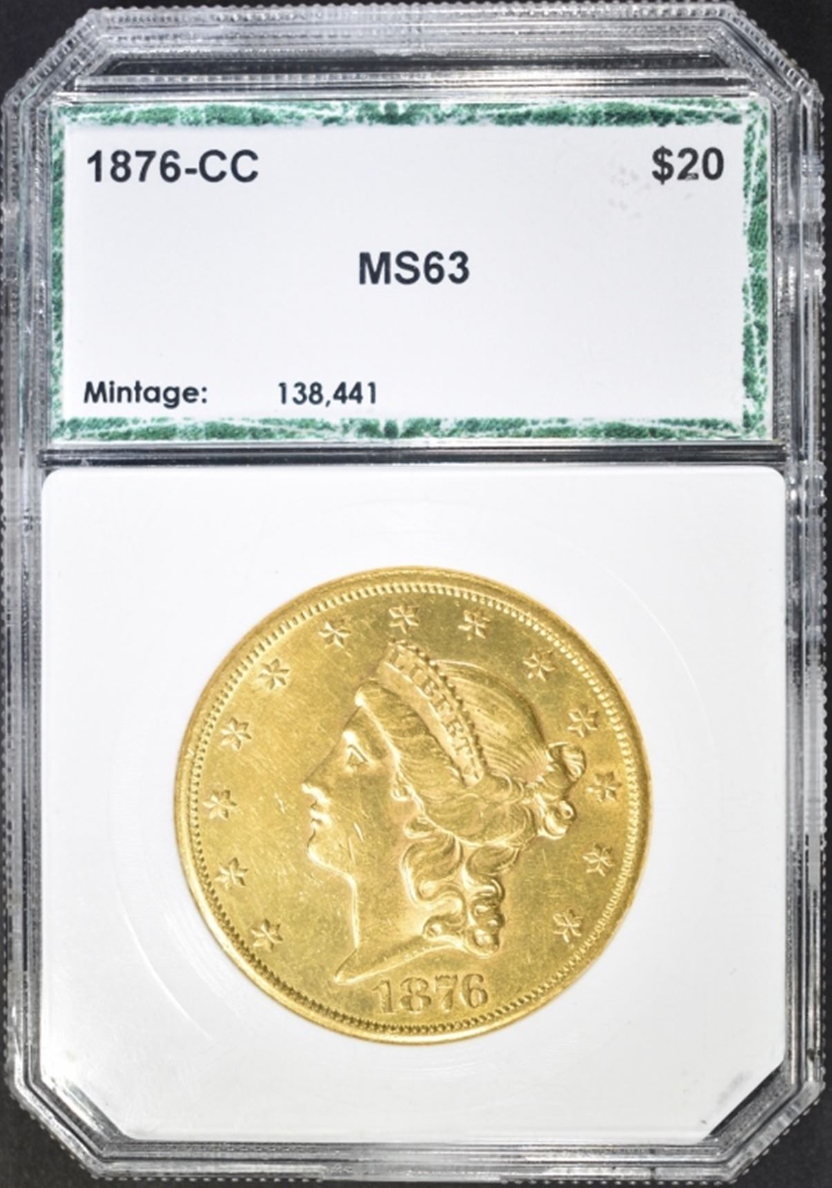 RARE!!!! 1876-CC $20.00 GOLD LIBERTY IN OLD  PCI HOLDER CH BU+ -VERY RARE DATE!! ESTIMATE  $26,500 - $30,000.