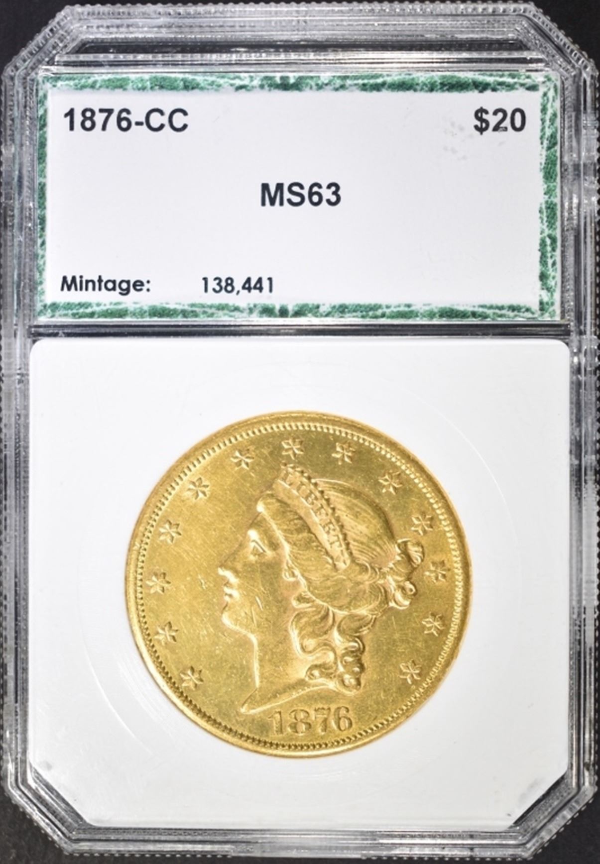 RARE!!!! 1876-CC $20.00 GOLD LIBERTY IN OLD PCI HOLDER CH BU+ -VERY RARE DATE!! ESTIMATE $26,500 - $30,000.