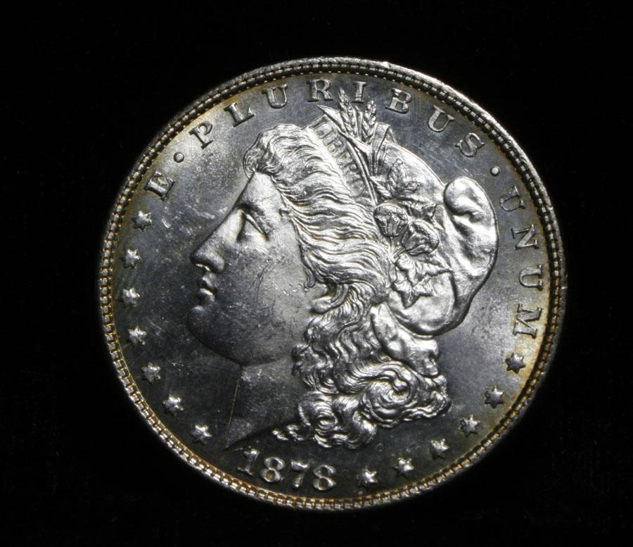 A stunning example, Light gold rim toning at the very edge attest to this coins all original status. It is so strongly blast white one would doubt that it has never been dipped, but that rim toning attest that it has never been dipped or cleaned, It is really an exceptional example. This coin is the Vam 19, great interest in this coin. Interest level 4, the interest scale only goes to 5. Rarity 4. This coin has the wild doubled date, doubled stars and much more. go to www.vamworld.com to read all about this great variety. Coin World's Coin Values lists ms65 at $1500 and The Wholesale Greysheet lists ms65 at $1270. Estimated Value $1350