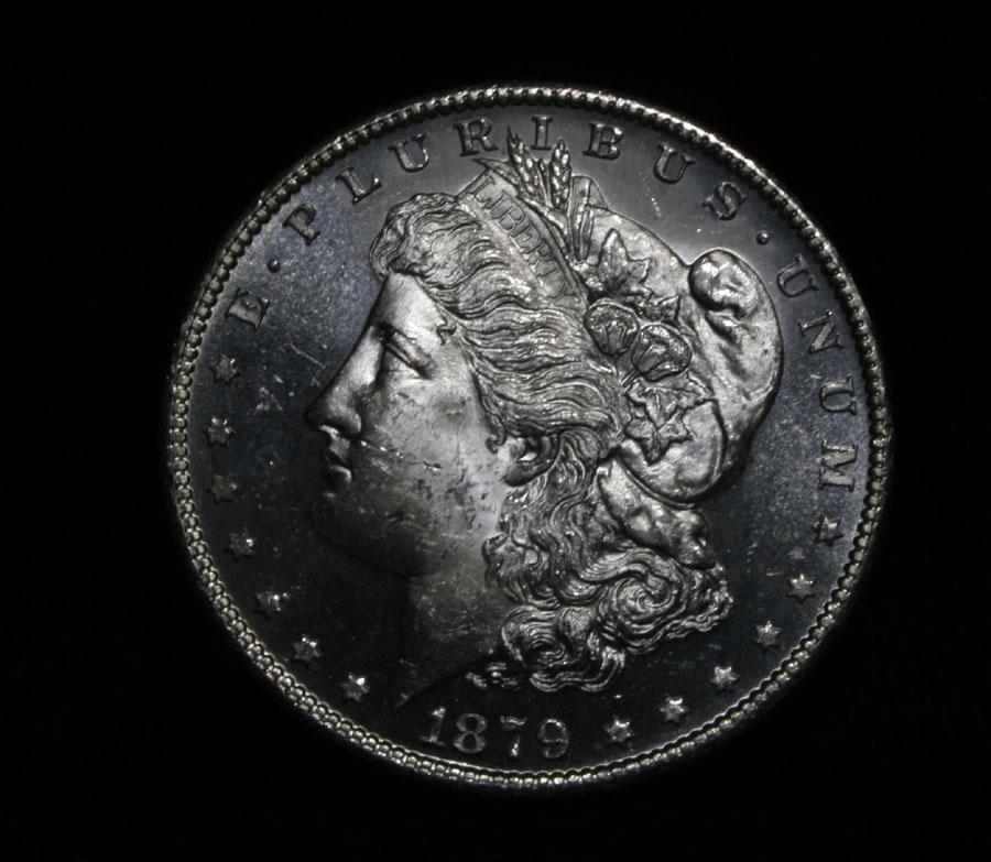 Frosted Devices, Deep Mirrored Fields. Virtually no Bag Marks, a Tremendous Example. Besides being a very rare Deep Mirror Proof Like example, it is the VAM 1D. This VAM was only discovered in 2010 and is very rare, it is the ONLY 1879-s variety with clashed letter transfer. It has an 'st' on the obverse. No other 1879-s Variety have any letter transfer of the myriad of 1879-s varieties. VERY rare, it is so new and so rare the Rarity level has not even been determined yet, probably an R-6 or R-7. Wholesale Greysheet Bid for a regular ms65 DMPL is $1050. Estimated Value $1250