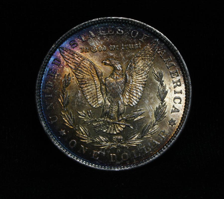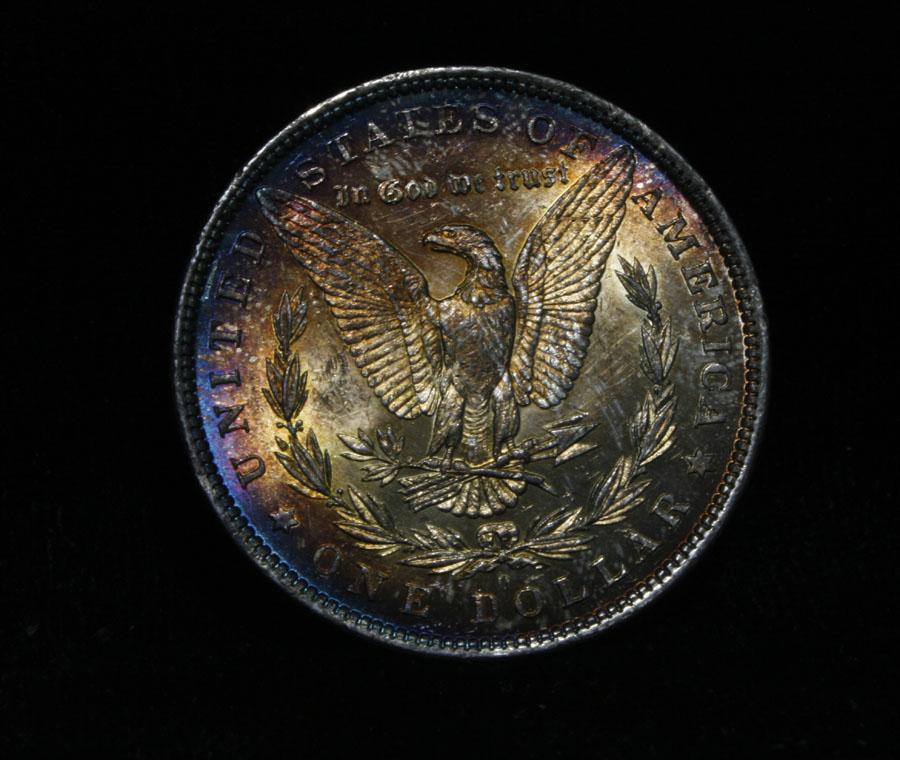 Beautiful colors permeate the entire reverse with a darker purple Obverse. The reverse has a wonderful deep blue arc on the left side. Very attractive. I will offer my personal buy back guarantee, that this coin is all original and will not come back Ungradeable by any major grading service. Coin World's Coin Values lists ms65 at $1500 and The Wholesale Greysheet lists ms65 at $1200. Estimated Value $1400