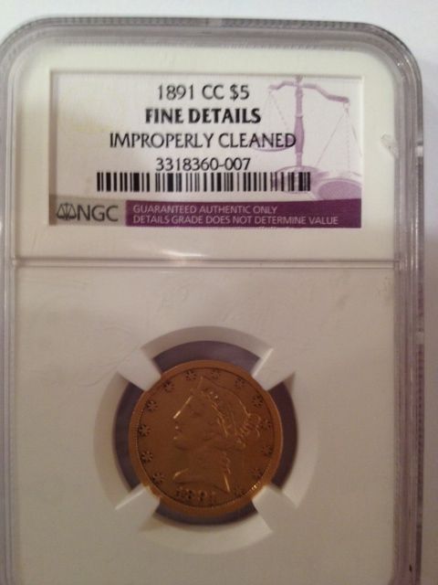 RARE 1891 CARSON CITY $5 GOLD, NGC FINE DETAILS