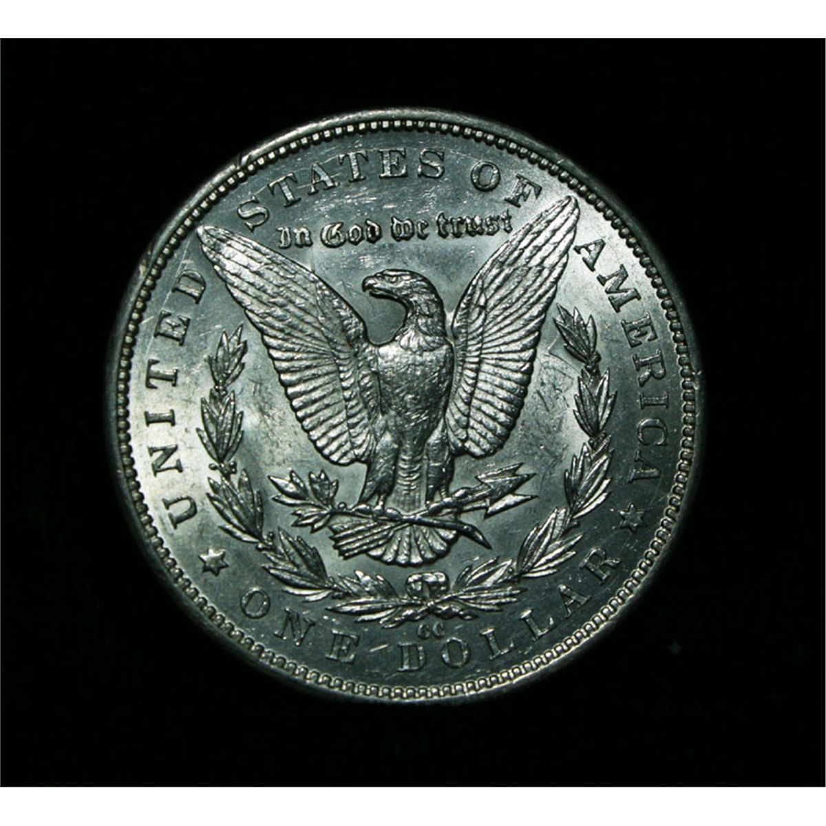 Blast White, Lustrous example of a Rare Carson City Morgan Dollar. This one is Uncirculated ms62. It is also the VAM 4B "cc/cc with multiple clashed n's on the obverse and a die break on the reverse". NGC's Price Guide lists ms62 at $1,710. The Wholesale Greysheet lists an ms60 at $1,150 and ms63 at $1,600. Estimated Value $1500