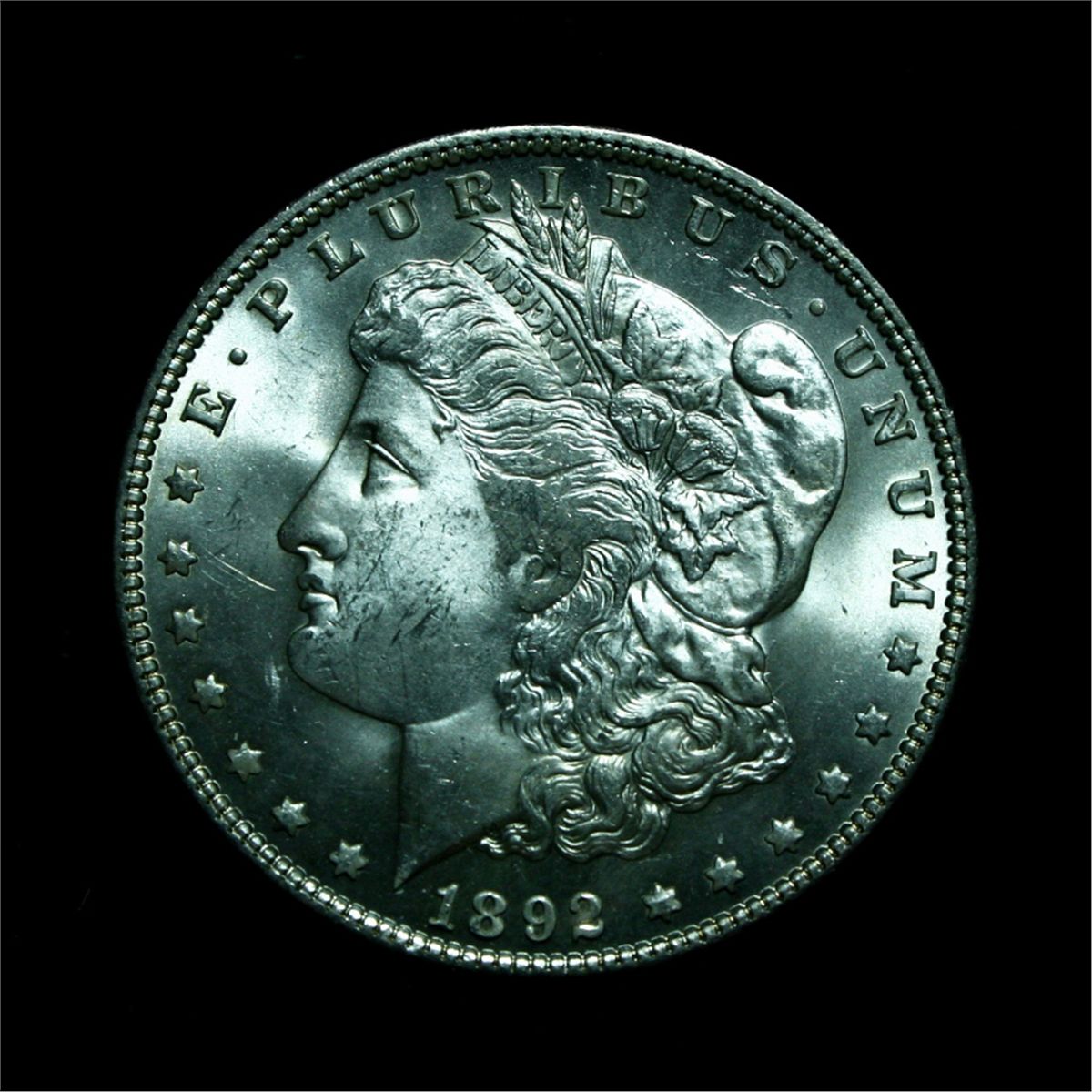 This Coin is SCARCE in this Grade. Blazing Luster, very clean and very well struck for a 92-p. Blast White. Great eye appeal. This is also the VAM 1A 'Clashed Obverse n' with a Rarity of 5. This is a Super Coin. Total Mintage of 1,036,000. Lower mintage than 92-cc, 92-s, 91-cc, 94-s, and 75 other dates! I will offer my personal buy back guarantee, that this coin is all original and will not come back Ungradeable by any major grading service. NGC's Price Guide lists an ms64 at $980 and an ms65 at $4340. The Wholesale Greysheet lists an ms64 at $875 and an ms65 at $4050. Estimated Value $1500.
