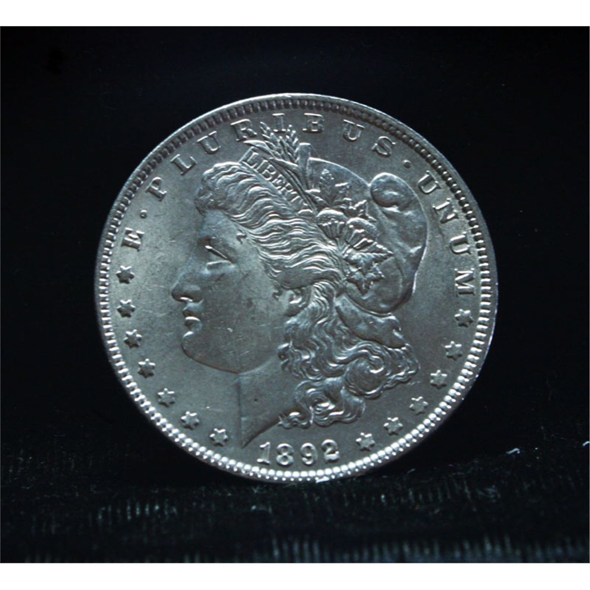 This Coin is SCARCE in this Grade. Well Struck for the 1892-p, with great Luster and good eye appeal. Blast White with a double die reverse and a slight proof like appearance to the reverse. Very clean example. This is also the VAM 3A with "Doubled 1 & Stars, Doubled Reverse, Clashed Obverse n". This variety has a rarity of 5. Total Mintage of 1,036,000. Lower mintage than 92-cc, 92-s, 91-cc, 94-s, and 75 other dates! NGC's Price Guide lists an ms64 at $980 and The Wholesale Greysheet lists an ms64 at $875. Estimated Value $925