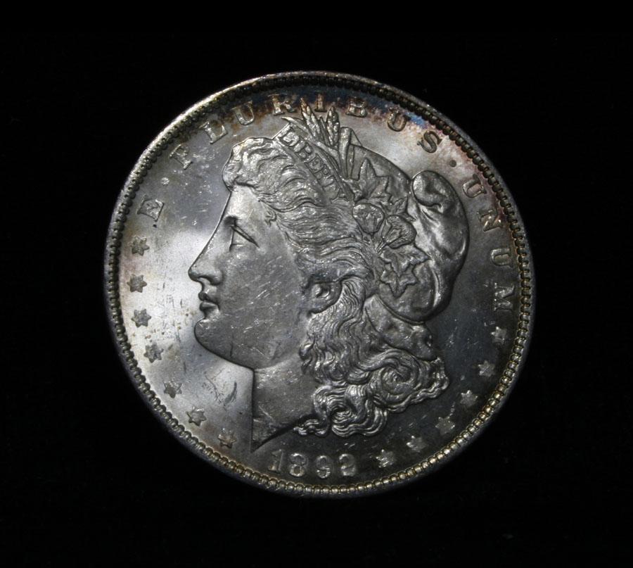Absolutely Stunning all Original coin with a beautiful Golden Rim Tone. This coin is Guaranteed Gradable and I will personally buy this coin back if it is denied a grade from any major grading company. I will further offer a buyback guaranty if it is more than 1 point off my estimated grade. This Coin is SCARCE in this Grade. Great Strike for the 1892-p, with BEAUTIFUL Luster. Total Mintage of 1,036,000. Lower mintage than 92-cc, 92-s, 91-cc, 94-s, and 75 other dates! Coin World's Coin Values lists ms64 at $1000 and The Wholesale Greysheet Value of ms64 at $870. Estimated Value $900