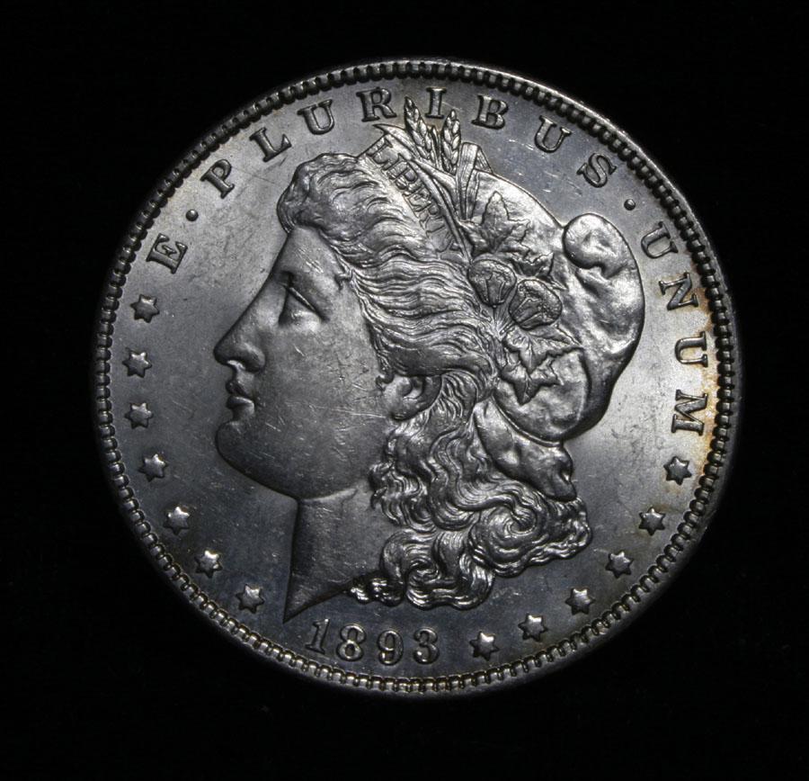 The Highlight of the Auction. A white 1893-o with Very Clean Fields, a Nice Rounded cheek, a good Strike. A faint amount of yellow toning on the periphery. Exceeding Rare coin in any Grade let alone Choice Uncirculated ms64. Coin World's Coin Values lists ms64 at $22,500 ms63 at $8500 and The Wholesale Greysheet lists ms64 at $14,300 and ms63 at $5200. I think its a ms64 but I provide ms63 data also. LOOK AT THE HUGE PICTURES. Estimated Value $15,000