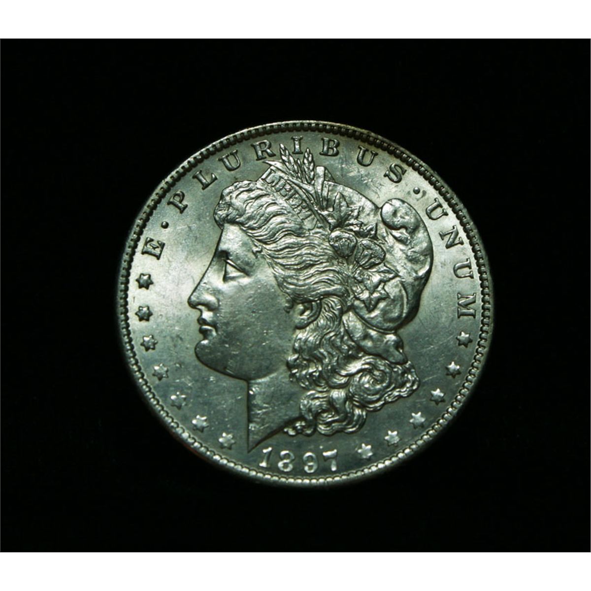 A nice white example of a very difficult date in uncirculated condition. Good eye appeal and good luster. It is the VAM 4 with the doubled 18_7 in the date. The Wholesale Greysheet Value of ms60 is $600 and ms63 is $3,960. Estimated Value $1000.