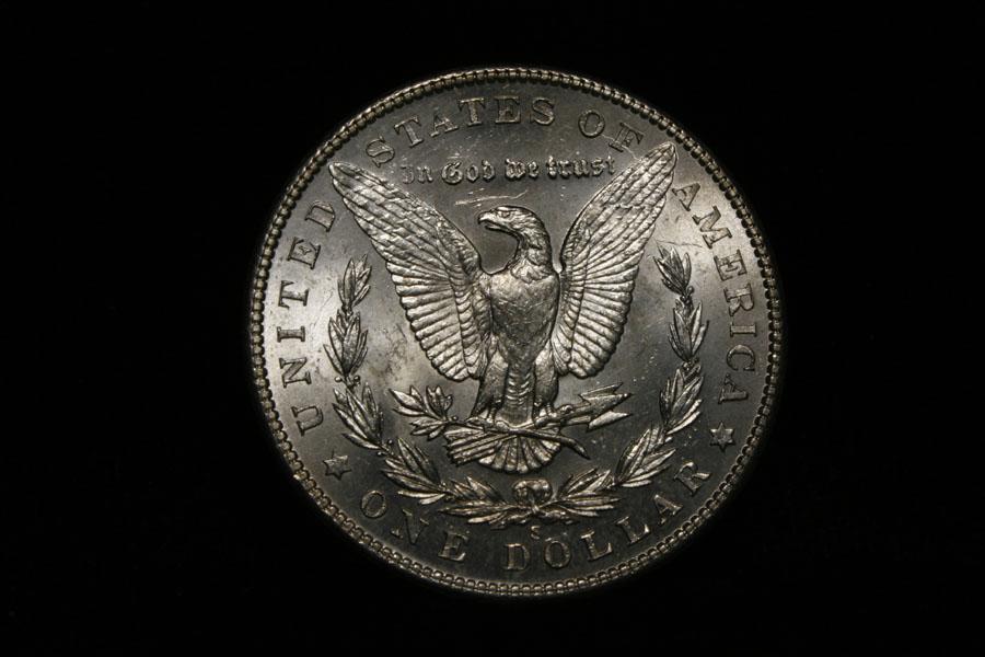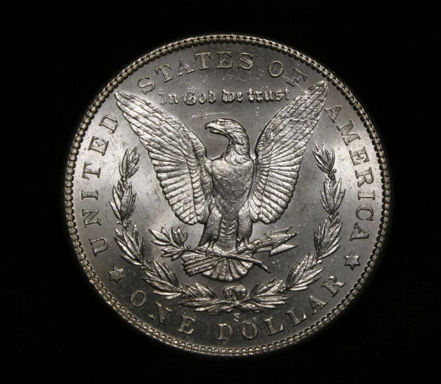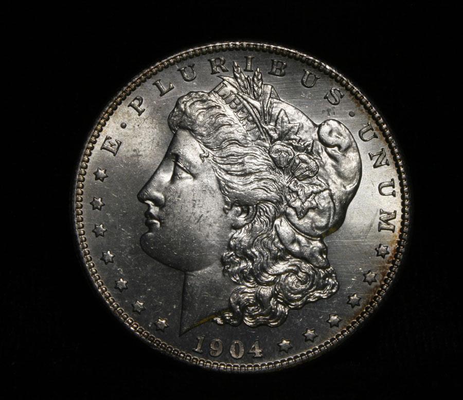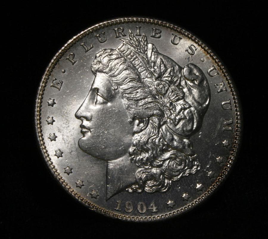 This is the Highlight of the Auction. We have never offered an uncirculated 1904-s let alone a stunning choice uncirculated as this one. Beautiful eye appeal, excellent luster. Coin World's Coin Values lists ms64 at $5000. The Wholesale Greysheet Value of ms64 is $4100. Estimated Value $4500
