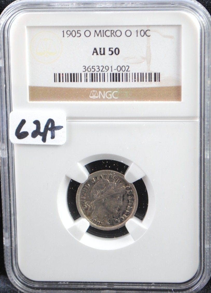RARE 1905-0 (MICRO 0) BARBER DIME - NGC AU50