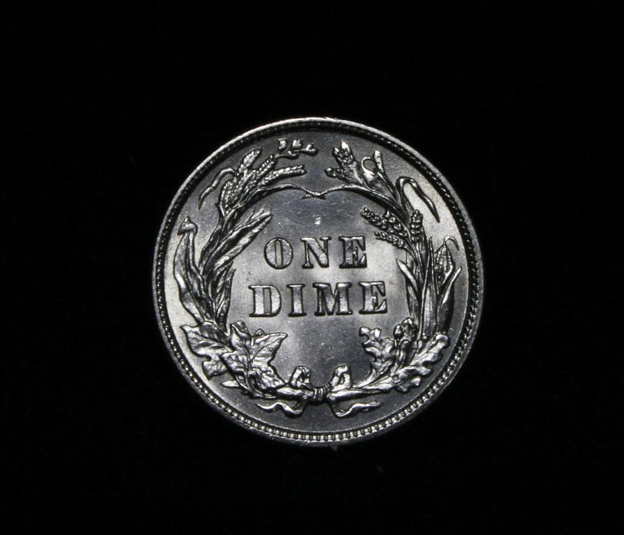 Stunning, Blast white Example. Possibly the nicest Barber dime I've ever offered up. Just stunning. Great luster, great strike, great all around. Coin World's Coin Values lists ms66 at $1100 and The Wholesale Greysheet lists ms65 at $475+ and does not list ms66 extrapolating ms66 at $750. Estimated Value $750