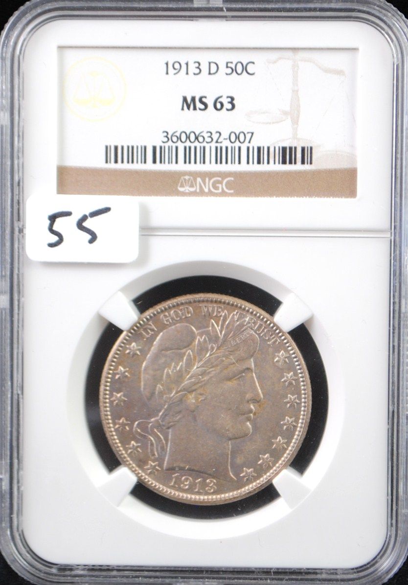 RARE 1913-D BARBER HALF DOLLAR - NGC MS63