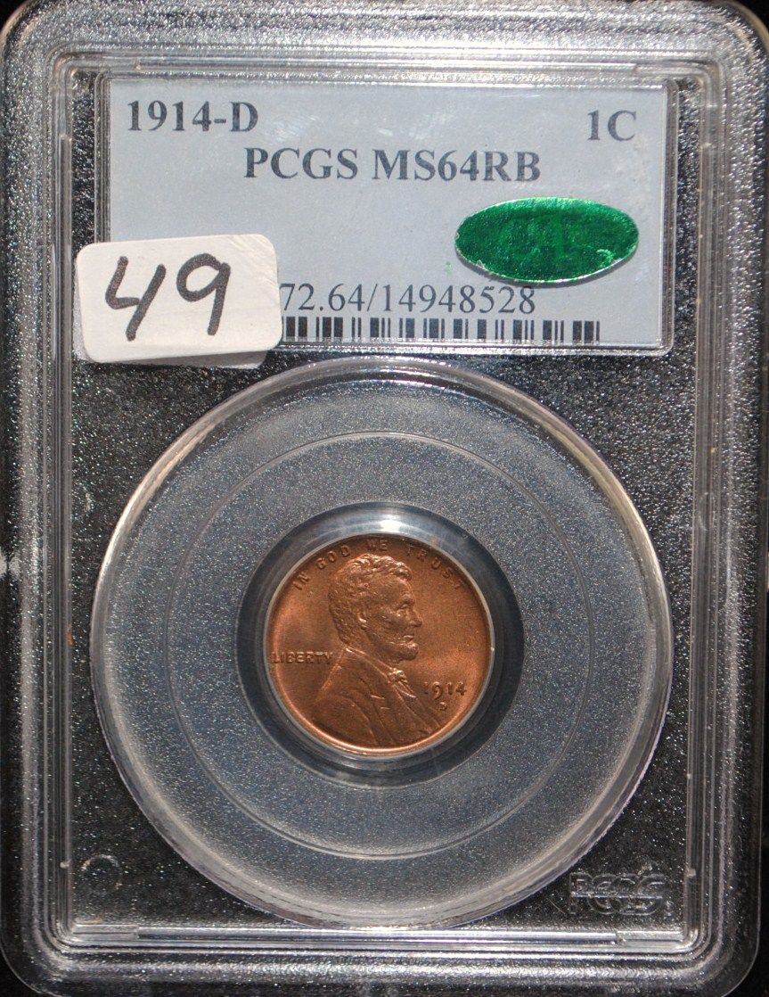 RARE 1914-D LINCOLN CENT - PCGS MS64RB "CAC" PCGS WEBSITE LISTS A MS64RB @ $6,500.00!