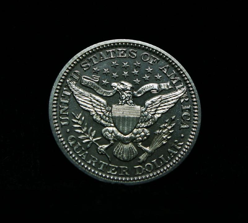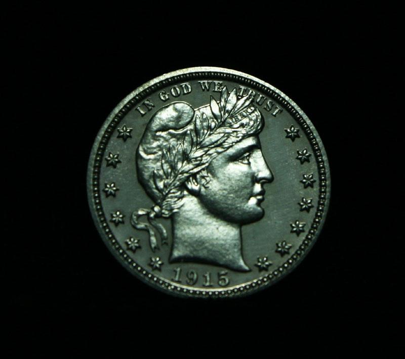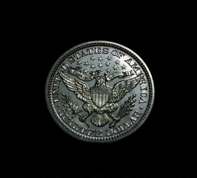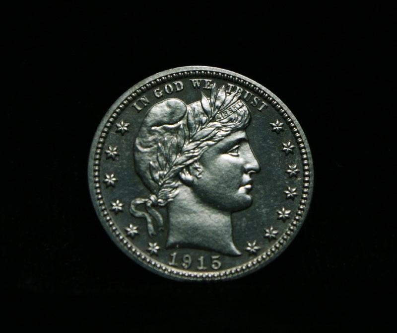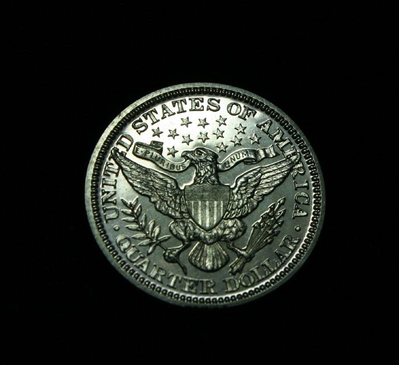 A beautiful Proof Barber Quarter. Mark Free, and terrific eye appeal. Very scarce coin. A ridiculously small original mintage of 450 pieces!! Coin World's Coin Values lists PR66 at $8000 and PCGS lists PR66 at $4500. Estimated Value $3000