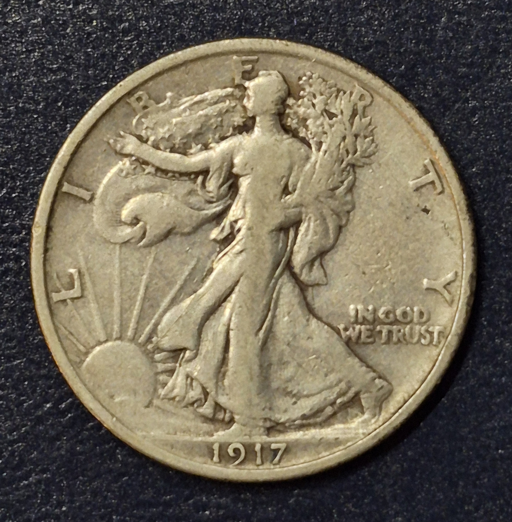 RARE 1917 Walking Liberty Half Dollar 90% US Silver Coin - Circulated - See Pics