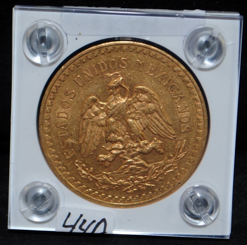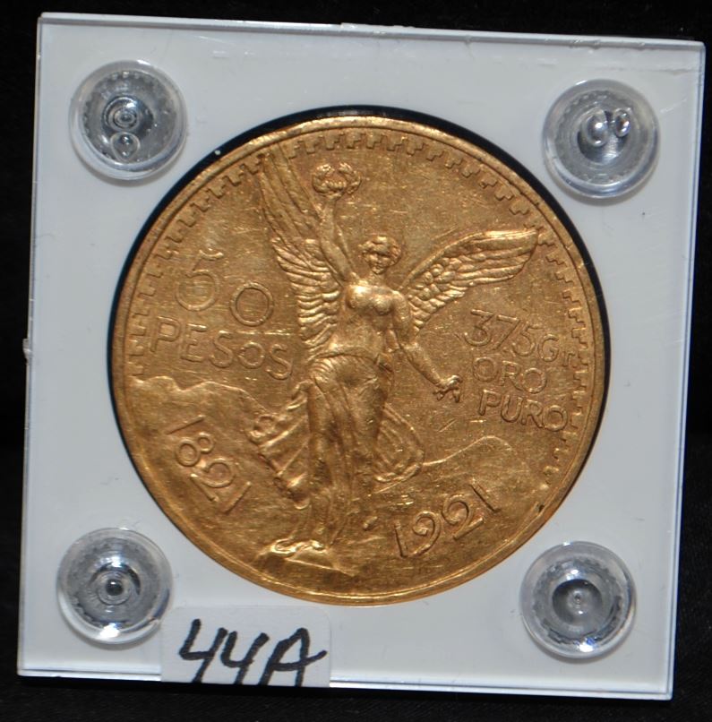 RARE 1921 (1ST YR) $50 GOLD PESO FROM SAFE DEPOSIT - SELLER GRADES AT AU/BU