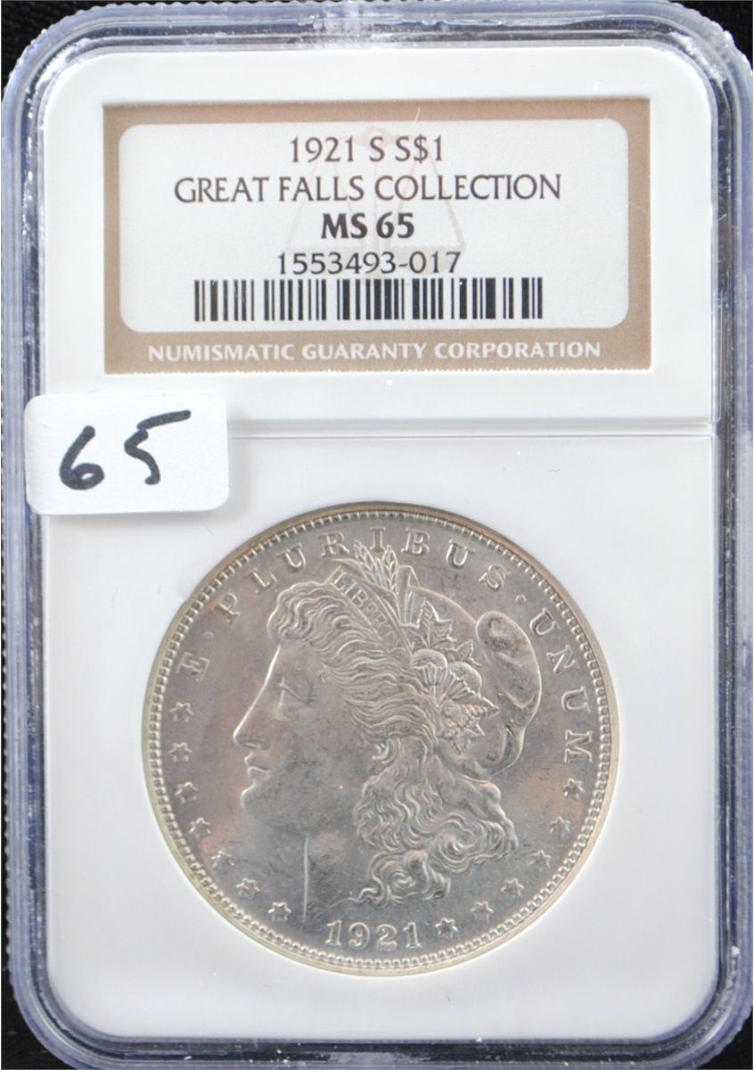 RARE 1921 MORGAN DOLLAR - NGC MS65 - GREAT FALLS COLLECTION