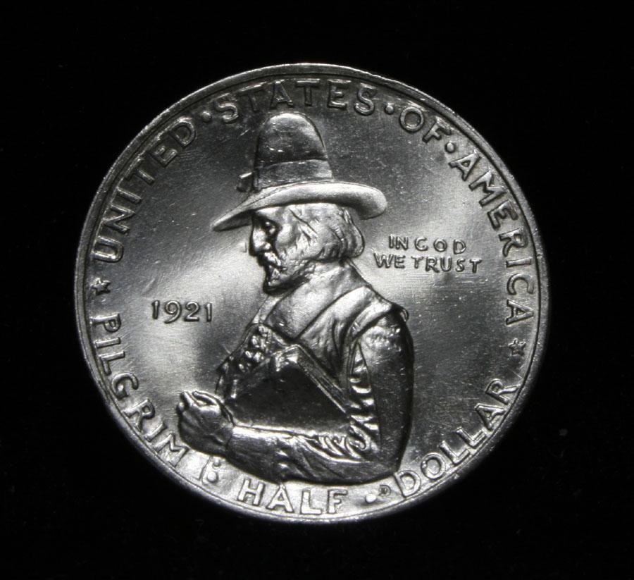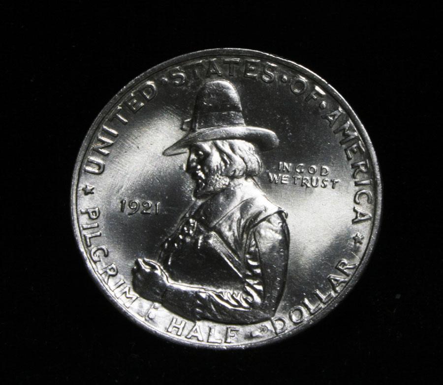 Stunning example of the much Rarer 1921 Pilgrim. The wide blank fields are always marred in some way, these are not, virtually mark free even under 10x magnification. All Original, Gorgeous example, I cannot rave enough. Rarely see a pilgrim in this condition. Exceptional luster. When examining a Pilgrim look for wear on the crow's nest and on the Cheek Bone on the obverse as these are the high points. Coin World's Coin Values lists ms66 at $1300 and the Wholesale Greysheet Value of ms66 is $700. Estimated Value $900