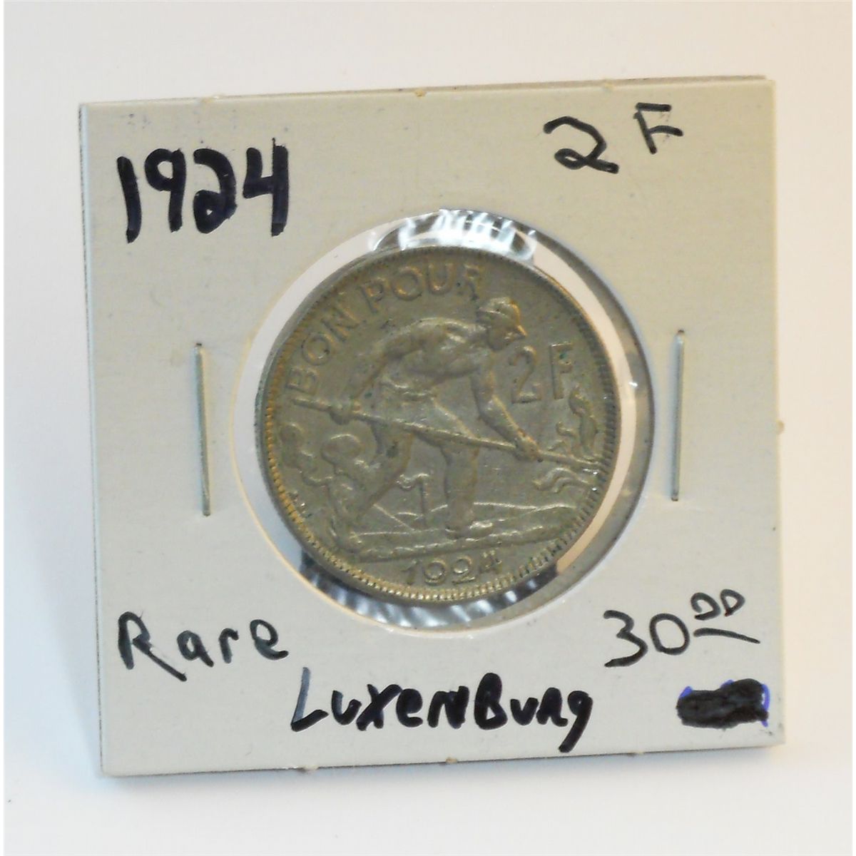 **RARE** 1924 Lexembourg 2 Francs *Only Made 1 Year* VF ***Coin, Currency & All Items Listed in this auction - Grades, Conditions and Values are not Safe Deposit Coins LLC Responsibilty. Grades, Condition and Values are determined by Consigner(s) & Buyers ONLY***
