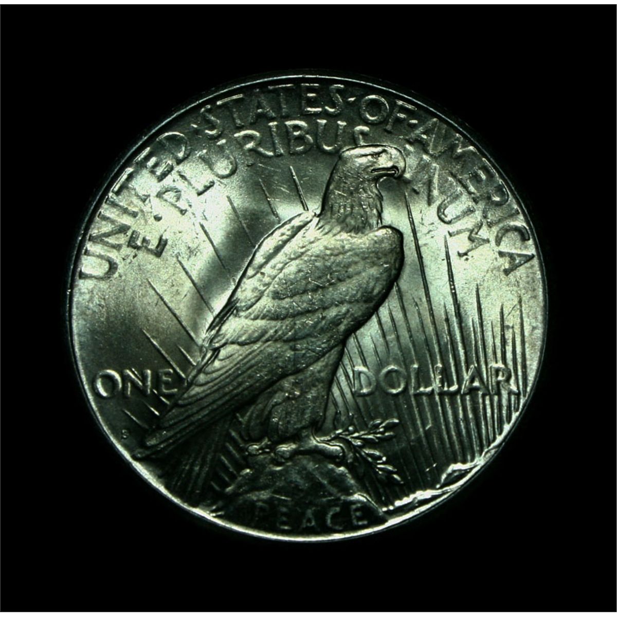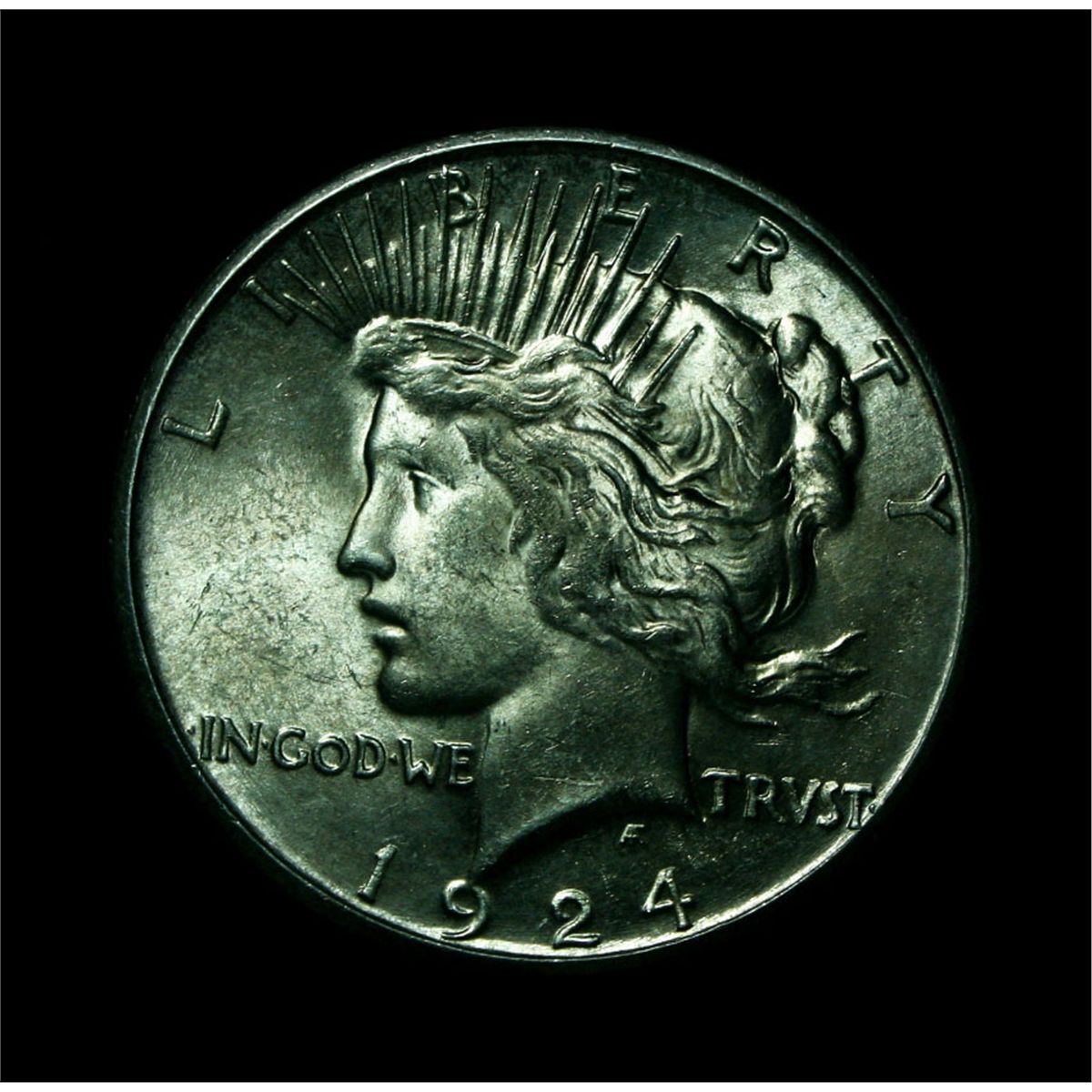 A lustrous Blast White example with a good strike. The 24-s generally has a "mushy" strike, this example does not. A great example of a key date Peace Dollar. NGC's Price Guide lists ms64 at $1410 and The Wholesale Greysheet lists ms64 at $1085. Estimated Value $1200