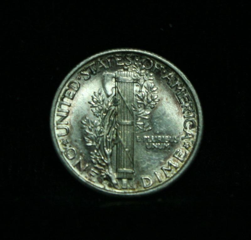 A Nice all original, Scarce Liberty Dime. Great example. Some might call it FSB, as technically it is, but I wouldn't call it FSB. And I'm estimating the value not as FSB. Coin World's Coin Values lists ms64 at $900 and The Wholesale Greysheet lists ms64 at $600. Estimated Value $700.