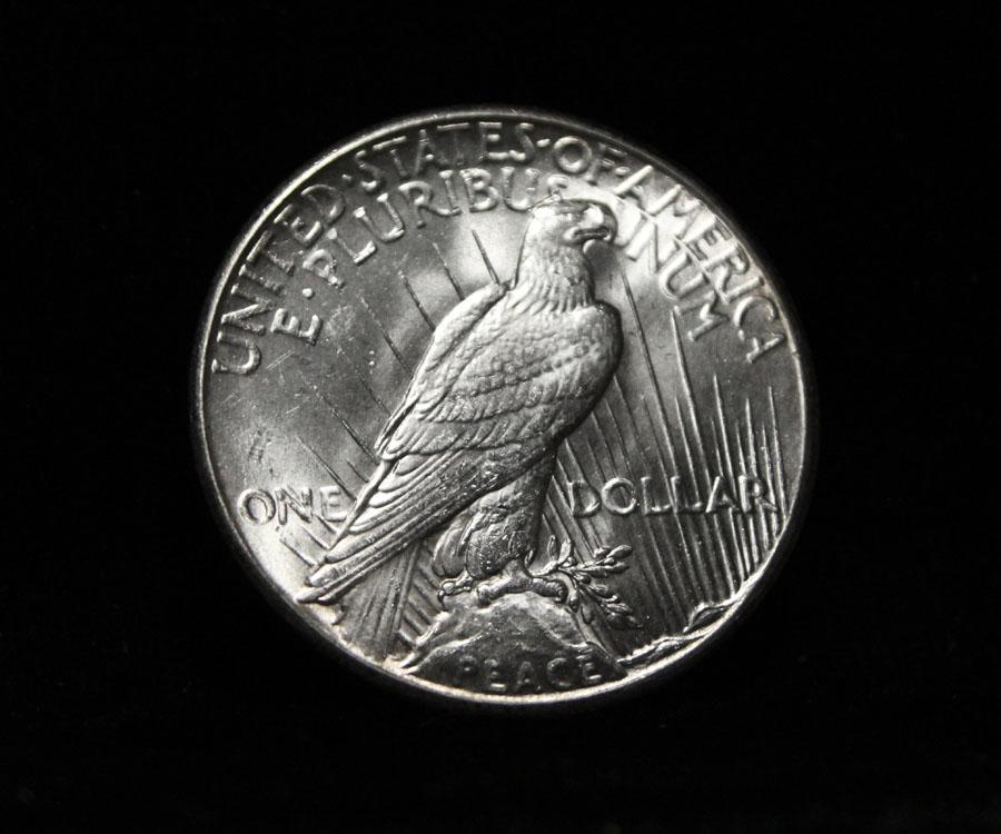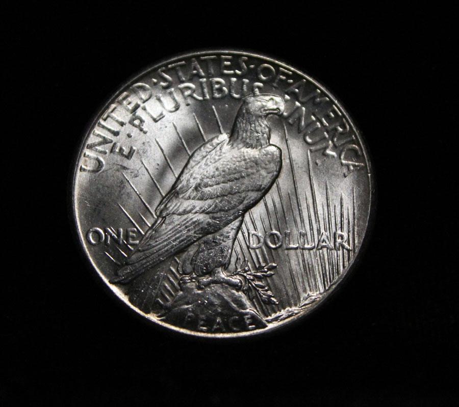 The KEY date to the Peace Dollar Series and it is Blast White. Beautiful Even Luster, Nice Strike, Virtually no marks. I will offer my personal buy back guarantee, that this coin is all original and will not come back Ungradeable by any major grading service. Coin World's Coin Values lists ms64 at $1500 and The Wholesale Greysheet Value of ms64 is $1025 Estimated Value $1200