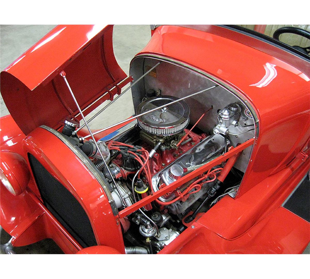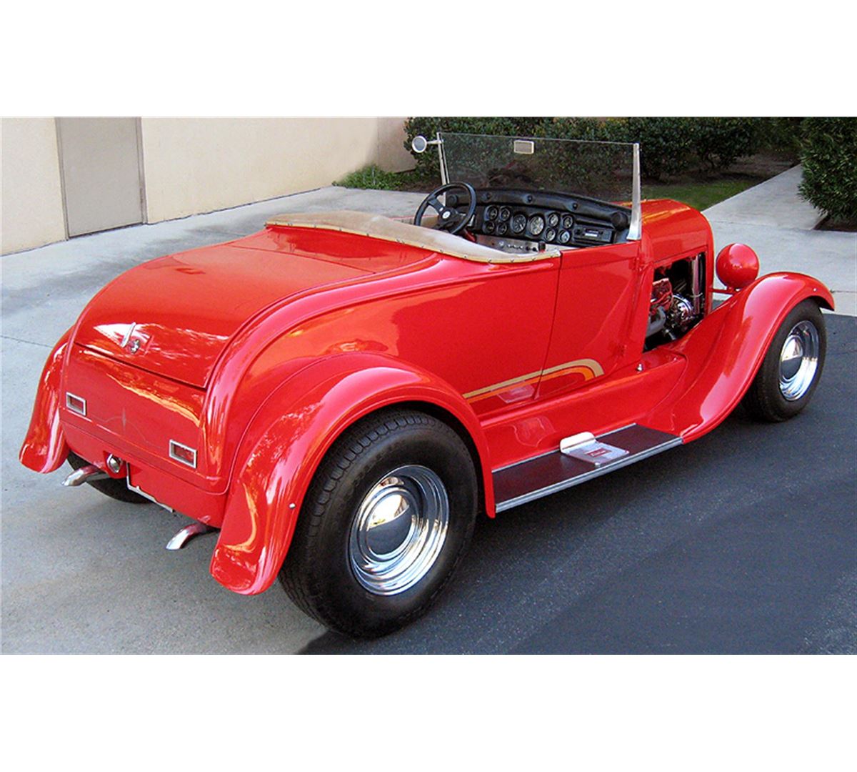 Awesome 1929 Ford Roadster! Great Driver! Full fendered glass body with working doors. 302 Ford V8 with automatic transmission. Easy rack & pinion steering that feels like power steering. Drop axle with drum brakes. Straight Body with super paint! Great sounding dual exhaust with glass packs out the tail end. The fully custom padded dash is loaded with a complete set of Stewart Warner gauges, CB radio, stereo, and speakers! Nice upholstery. Chrome Smoothie wheels with big and little tires. Billet aluminum windshield, frame, posts, mirrors, and door handles. This is a very dependable street rod! Incredibly fun to drive with quick acceleration, responsive handling, and smooth suspension! Holley carburetor, Street Dominator intake, chrome alternator, chrome radiator overflow, and dress up kit. Recessed firewall. Tilt locking hood top! This street rod is very well engineered and thought-out. Turn signals are integrated into the front spreader bar. New aluminum street rod running board steps. Locking gas cap door. Finished trunk. Clever easy battery access designed through custom center section of the bench seat. 10 bolt Chevy rear end. Mr. Roadster pedals. Chrome fire extinguisher and custom padded steering wheel! B&M floor shifter. Graphics. Remote oil filter! Also included: fold down TOP, hood sides painted to match, leather bra, headlight covers, and etched glass wind wings! Needs nothing! Great looking with the correct stance! A truly fun turn-key driver that is ready for cruise nights now!