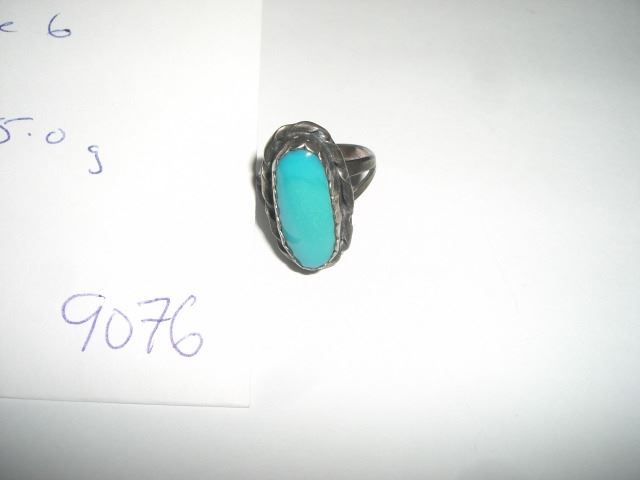 RARE 1930'S NATIVE AMERICAN SILVER & TURQUIOSE HAND-CRAFTED RING SIZE 6-TOTAL WEIGHT IS 5.0 GRAMS!! RING CAME OUT OF SAFE!! ***Coin, Currency & All Items Listed in this auction - Grades, Conditions and Values are not Safe Deposit Coins LLC Responsibilty. Grades, Condition and Values are determined by Consigner(s) & Buyers ONLY