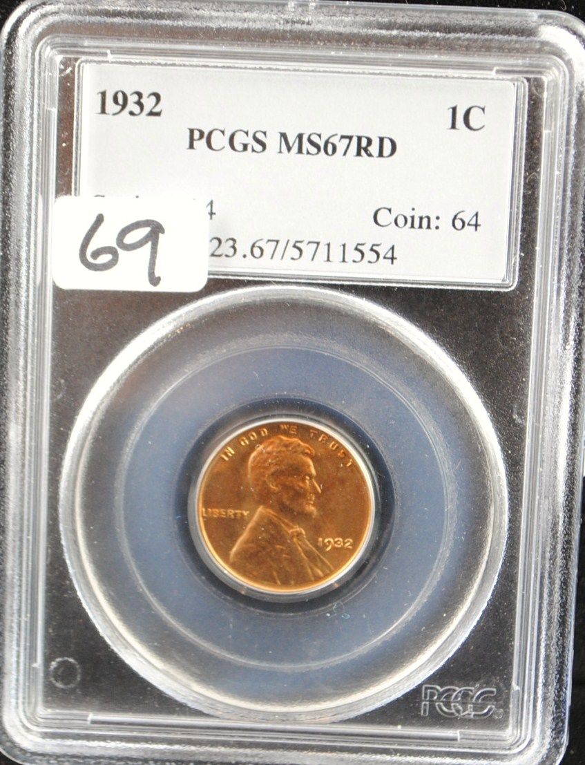 RARE 1932 LINCOLN CENT - PCGS MS67RD PCGS WEBSITE LISTS A MS67RD @ $3,700.00