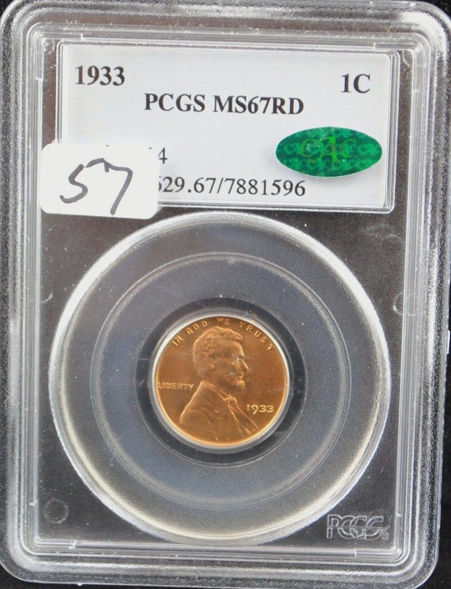 RARE 1933 LINCOLN CENT - PCGS MS67RD "CAC"!