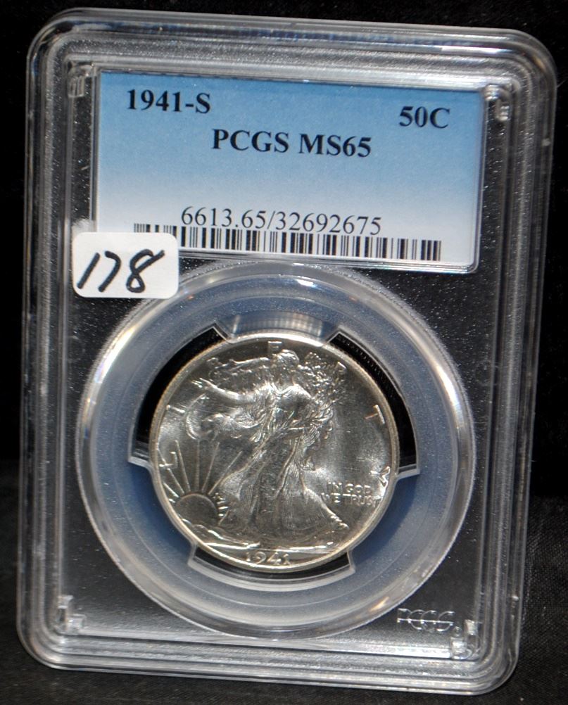RARE 1941-S WALKING LIBERTY HALF - PCGS MS65 (THE CURRENT COIN WORLD TRENDS LISTS AN MS5 @ $800.00)