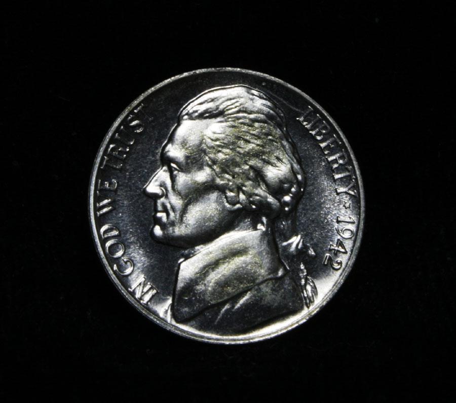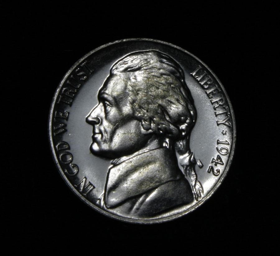 This is the ONLY Proof Silver War nickel ever produced. No other year of the War Nickel, was a Proof Set made. A very rare 1942 Proof Cameo Silver War Nickel. Part of a very limited 6 piece 1942 Proof Set. PCGS lists PR65 CAM at $1600. Estimated Value $1250