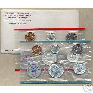 RARE 1964 BU Mint Set, 90% Silver US Coins, Uncirculated