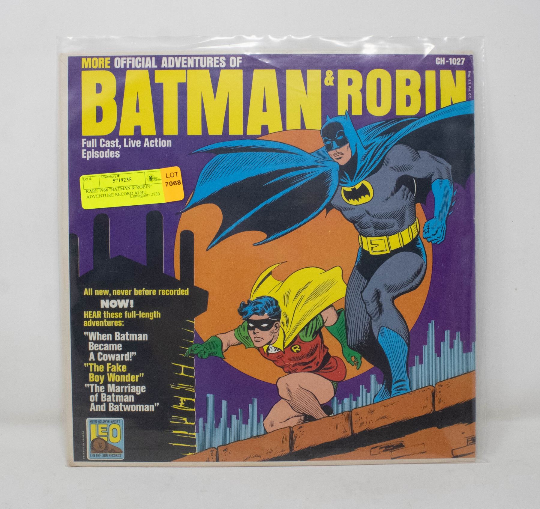 RARE 1966 "BATMAN & ROBIN" ADVENTURE RECORD ALBU