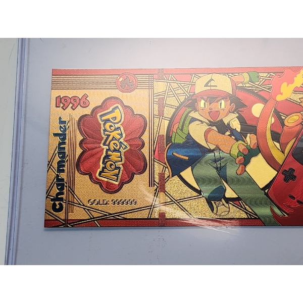 RARE 1996 Pokémon 999999 Gold Foil Note - Charmander - Mint Condition in Protective Holder