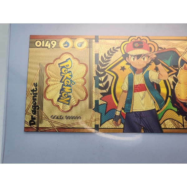 RARE 1996 Pokémon 999999 Gold Foil Note - Dragonite - Mint Condition in Protective Holder
