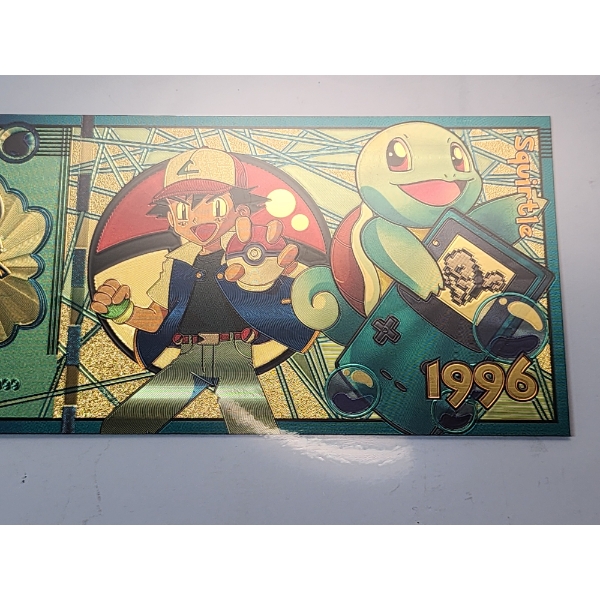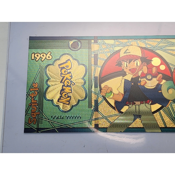 RARE 1996 Pokémon 999999 Gold Foil Note - Squirtle - Mint Condition in Protective Holder