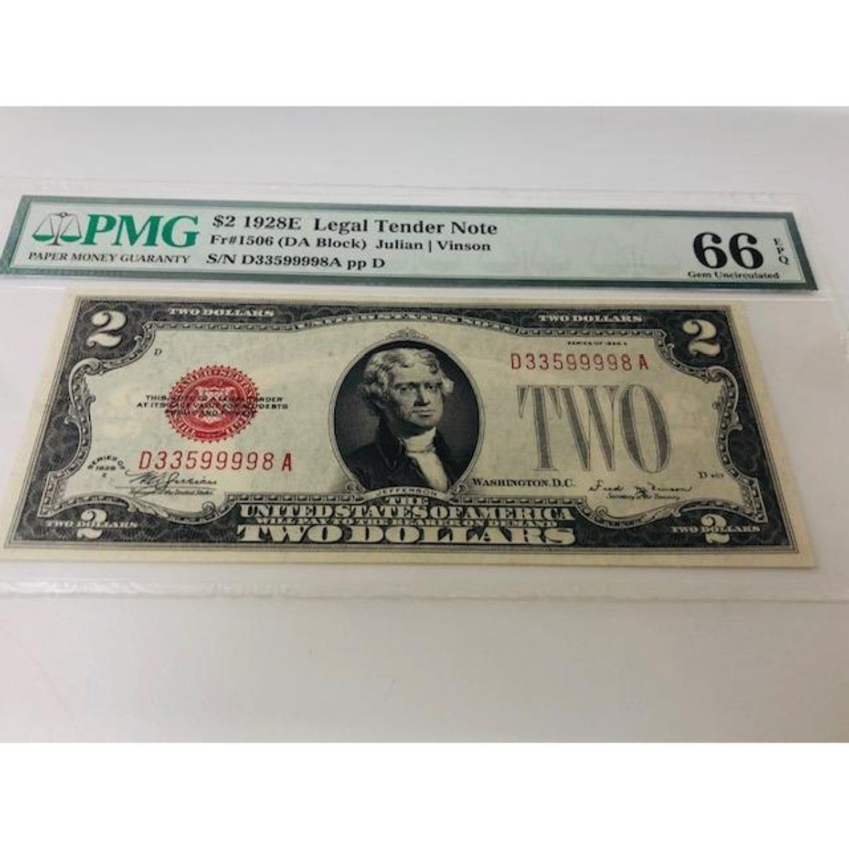 *RARE* $2 1928E US Bill - Legal Tender Note / PMG Graded 66EPQ Up For Auction Is A Very Rare High Grade 1928E US $2 Legal Tender Note. A Fine Example To Add To A Collection And A High Grade American Note. View Photos For Details.