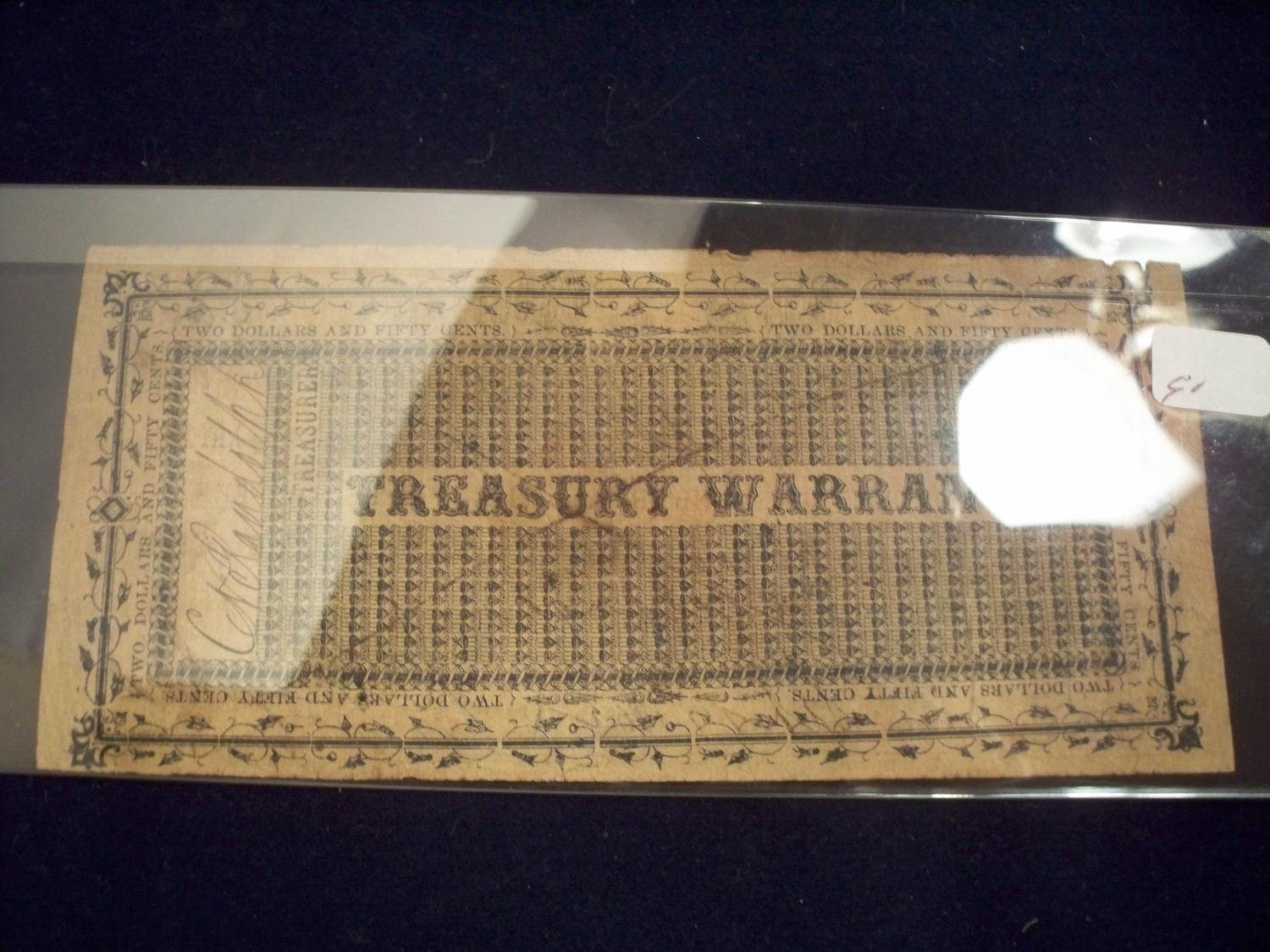 RARE $2.50 Brown Civil War Military Service Treasury Warrant