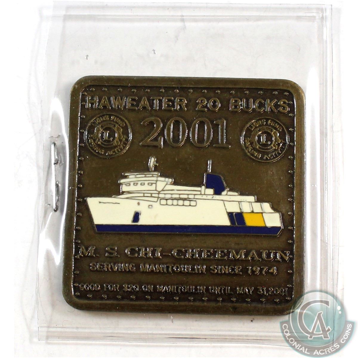 RARE! 2001 Manitoulin Haweater 20 Bucks Chi-Cheemaun Enamelled Token.
