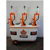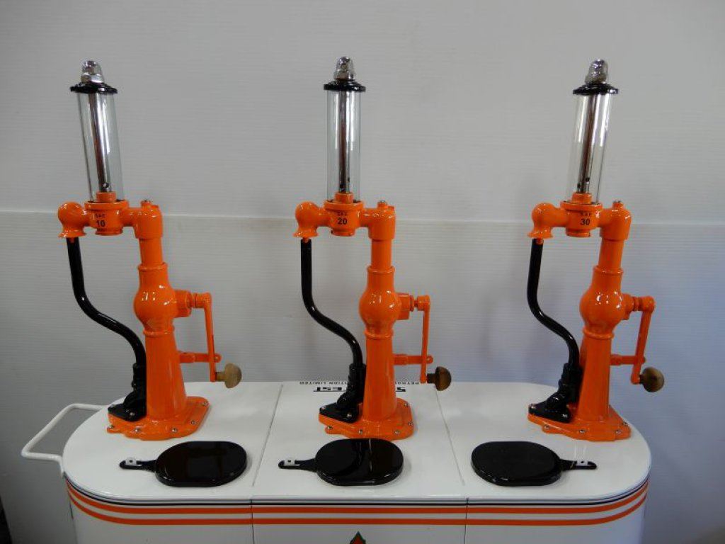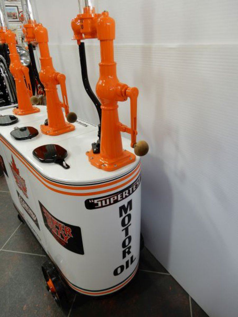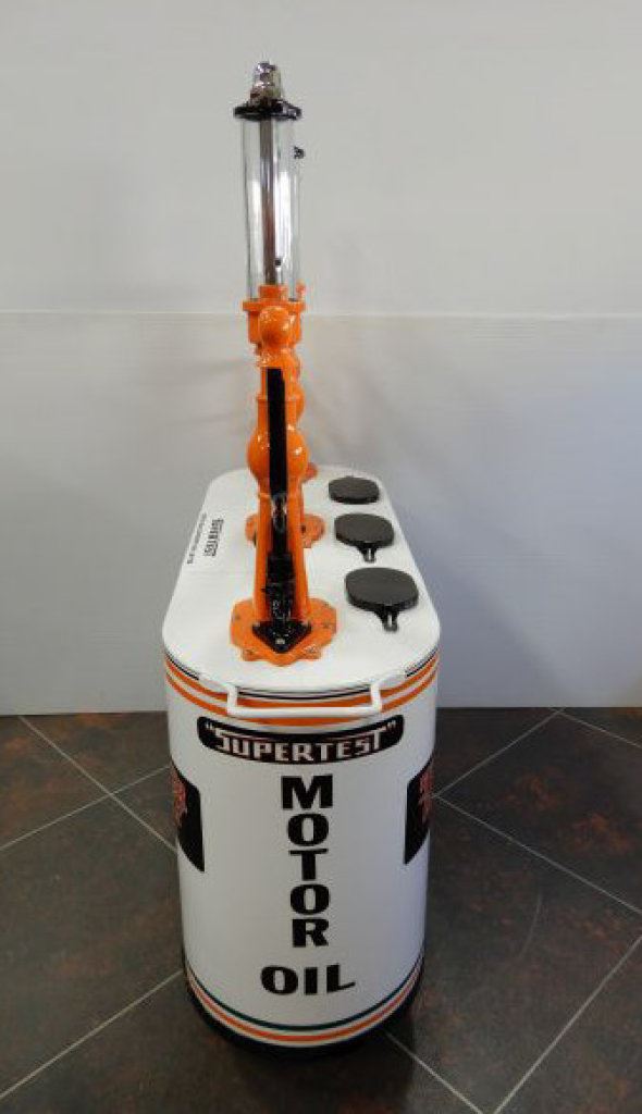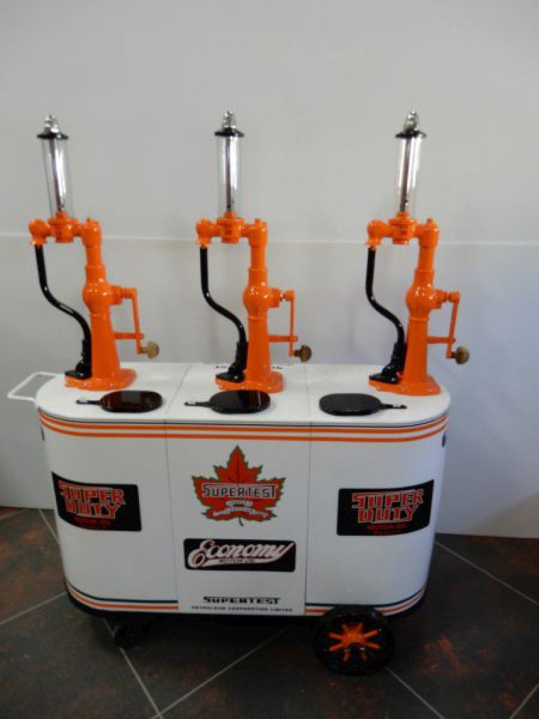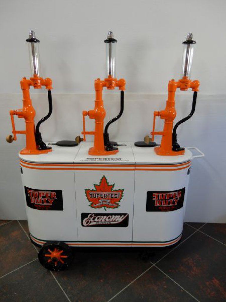 RARE 3 HEAD LUBESTER PROFESSIONALLY RESTORED SUPERTEST GLASS CYLINDERS- WHEELED CART - 53 1/2" X 23" X 62" LOCATION: SUPERTEST ROOM