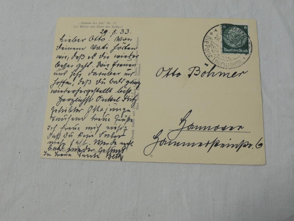 VINTAGE ADOLF HITLER POSTCARD. RARE HAIR NOT PERFECT. 1933 POSTCARD. HAND WRITTEN POSTCARDS. ANTIQUE EURPOEAN. TRAVEL. PAPER COLLECTIBLES EPHEMERA POST CARDS. AS SHOWN. SEE PHOTO FOR MORE DETAILS.