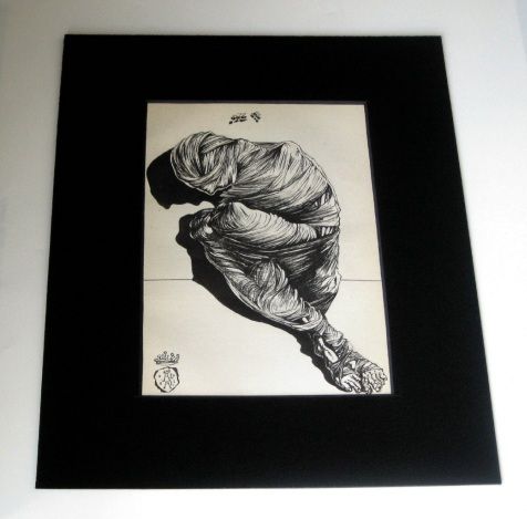 RARE ANTIQUE 1944 SALVADOR DALI LITHOGRAPH - "MUMMY" - PRINTED IN 1944 AND 1945 AND THEN NEVER AGAIN REPRODUCED - PAPER 7.5" X 10" - FRAMED APPX. 13" X 16" - PROFESSIONALLY FRAMED & MATTED