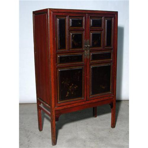 Features amazing handpainted floral & asiatic front which requires unique skills in old time...with 2 interior drawers, and 2 functional doors.