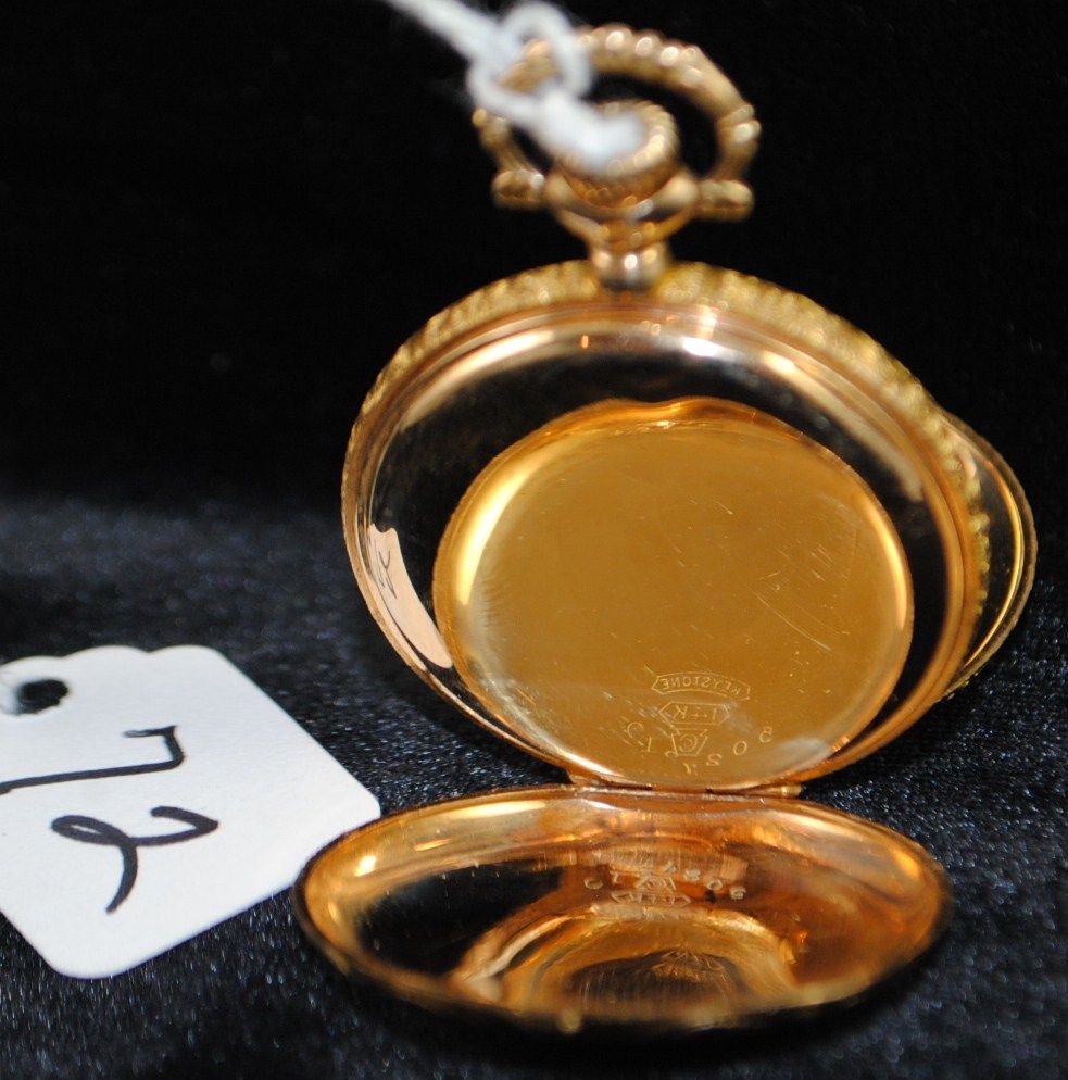 RARE ANTIQUE LADIES 14K HUNTERS CASE POCKET WATCH - 14K YELLOW GOLD ENGRAVED WATCH CASE "ELGIN" FA