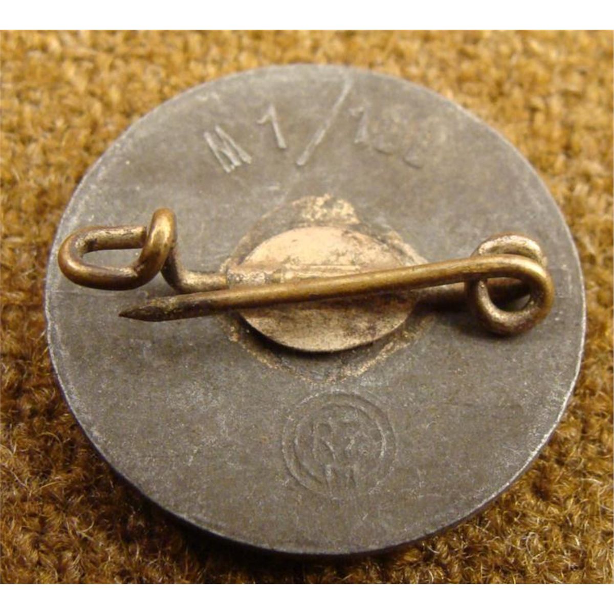 RARE BLACK NSDAP NAZI PARTY BADGE-PINBACK-MARKED "RZM-M1/100" * DIAMETER: JUST UNDER 1" *