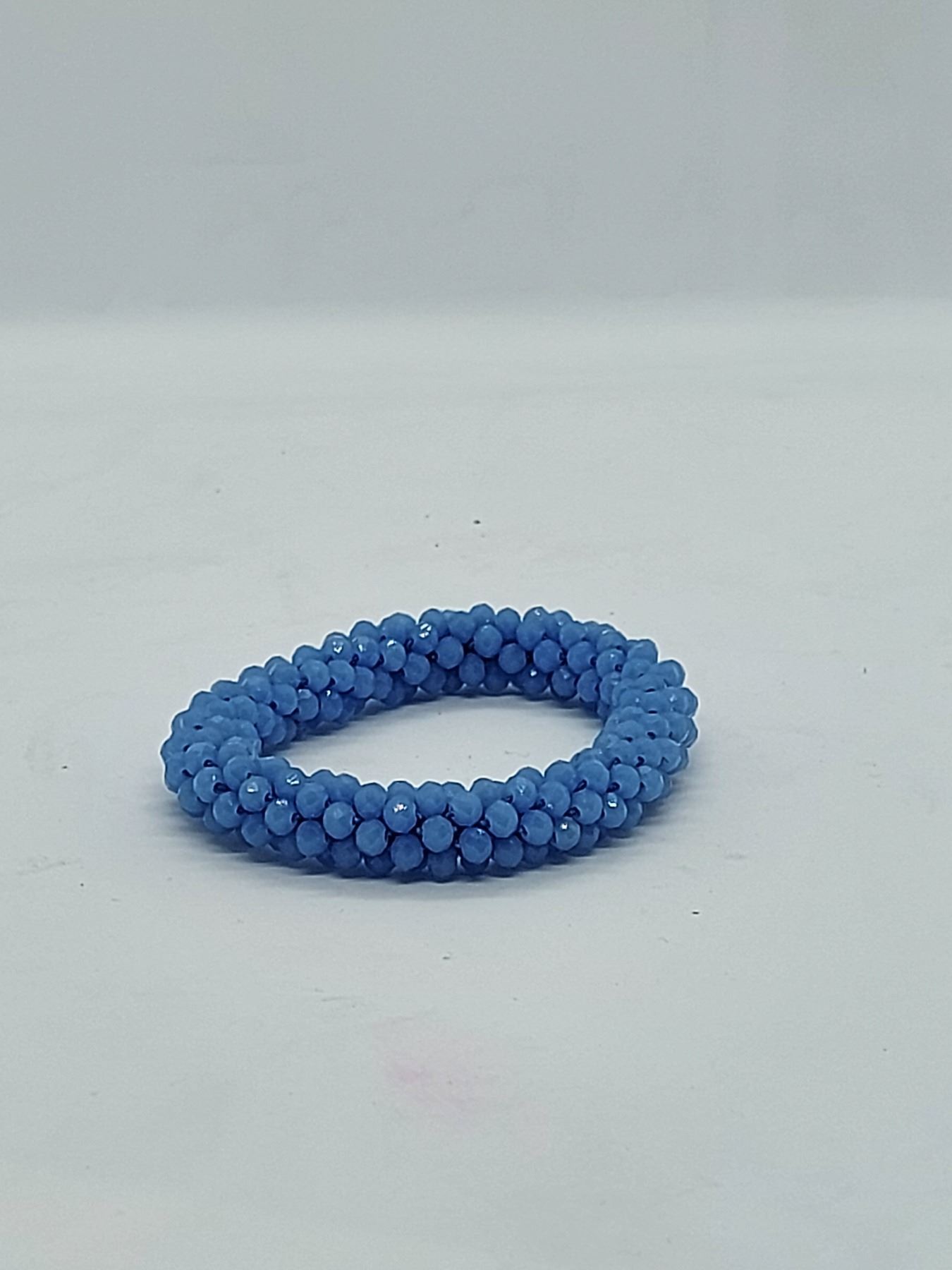 Faceted Blue Jade Rondelle Stretchy Bracelet 7.5 inch Width:10mm